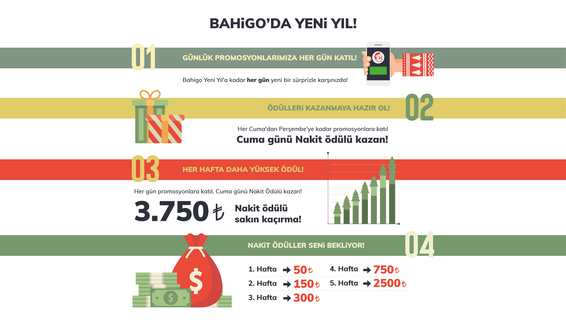 Her gün günlük promosyonlara katıl, 3.750 TL Nakit Ödül kazanma şansını kaçırma.